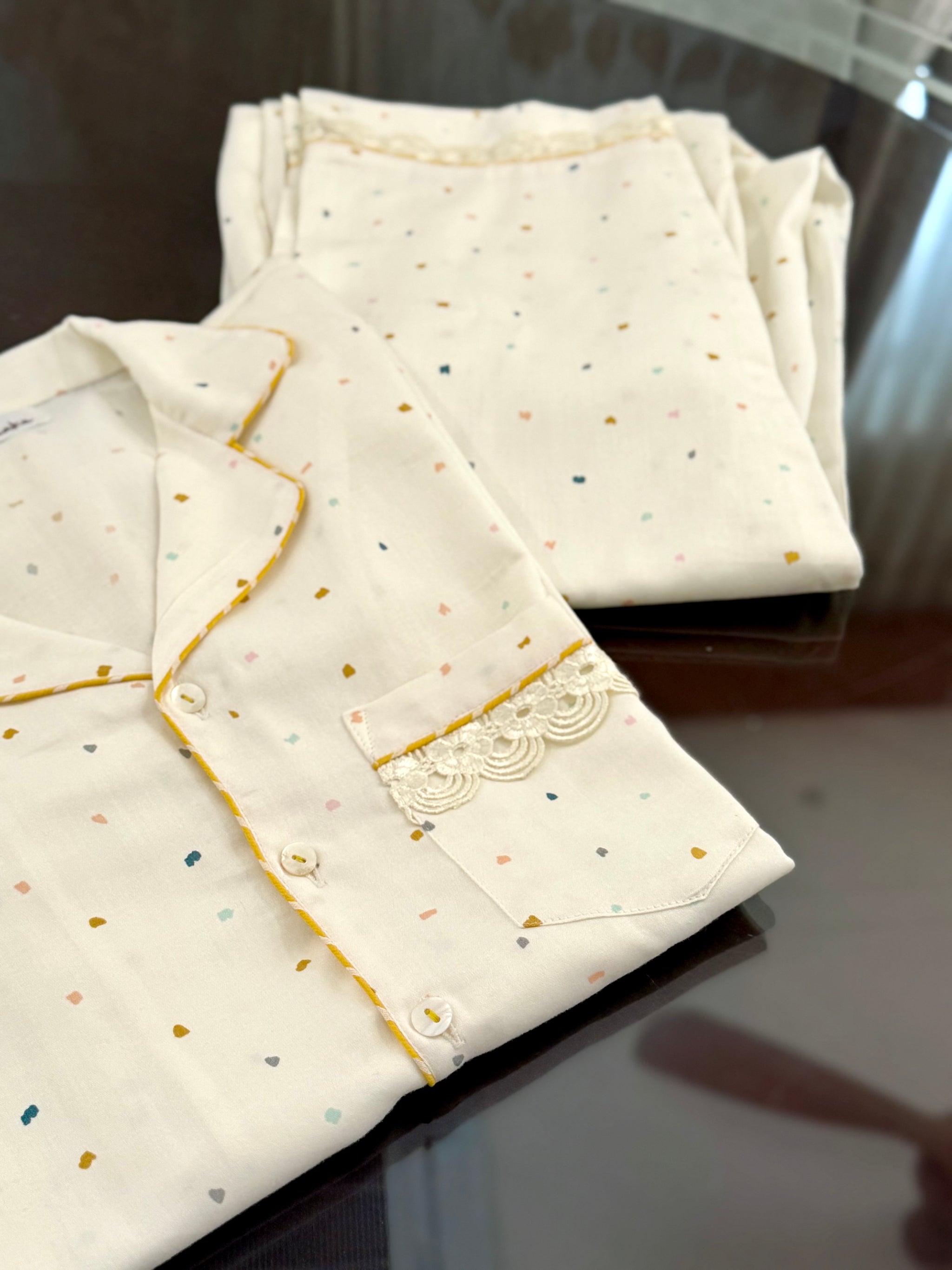 DESCRIPTION : Our 100% cotton satin night suits that have such an elegance and style about them! So many adorable prints and colours to choose from. Kindly add your INITIAL or NAME to be added in the comments box given below.